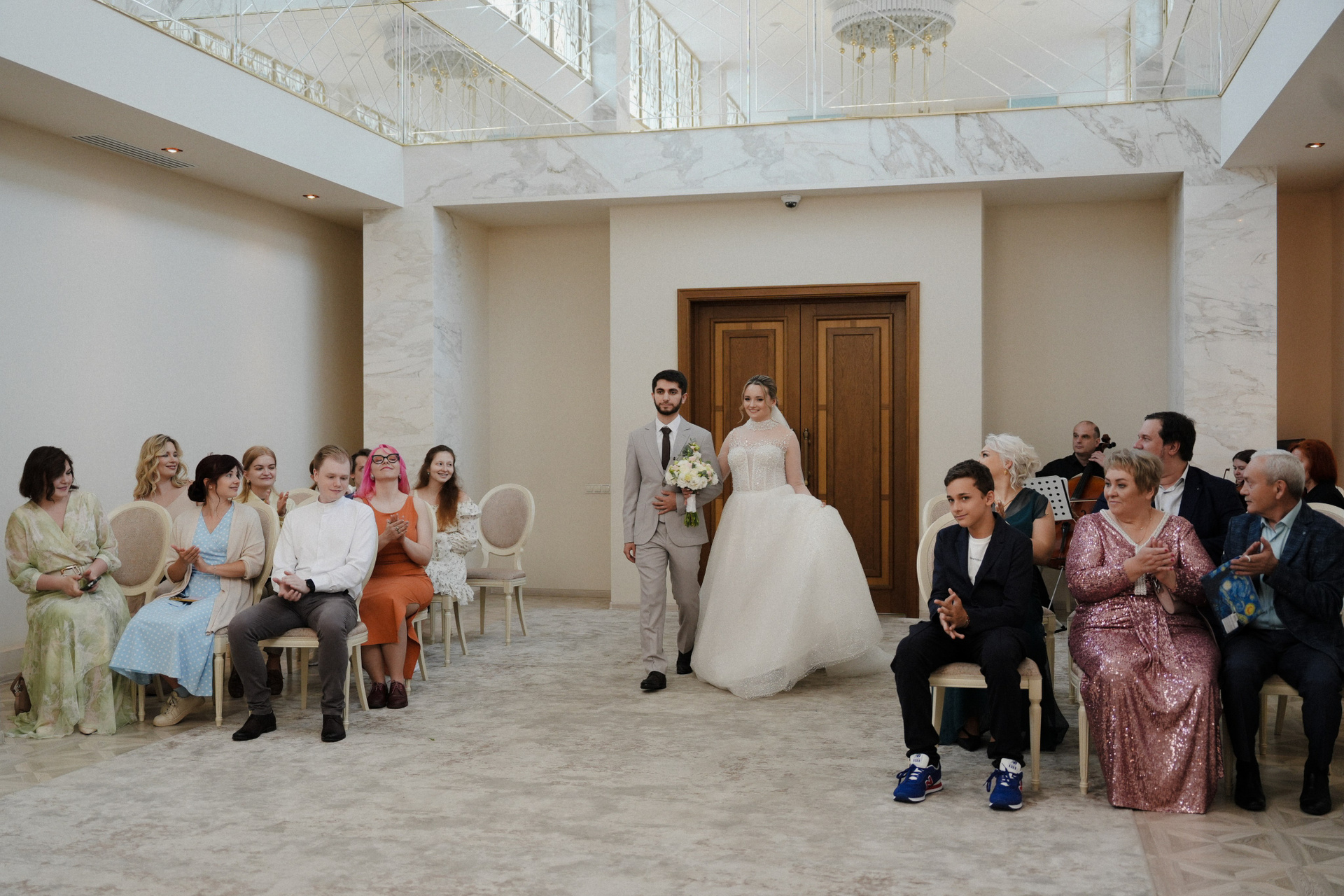 Сборы жениха и невесты, бракосочетание в Савеловском загсе, выездная церемония и празднование в кругу близких людей.